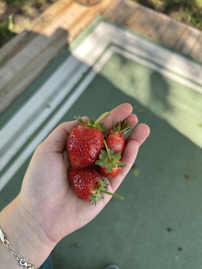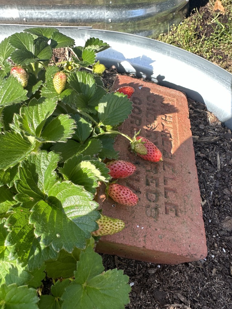 My strawberry plants from last year are thriving! I even ordered 40 more roots to plant on the side of our chicken coop. Once the coop part is finished, we’re adding raised beds to the side. This doubles as garden space and an extra layer of protection for the girls from any predator that tries to dig its way in.