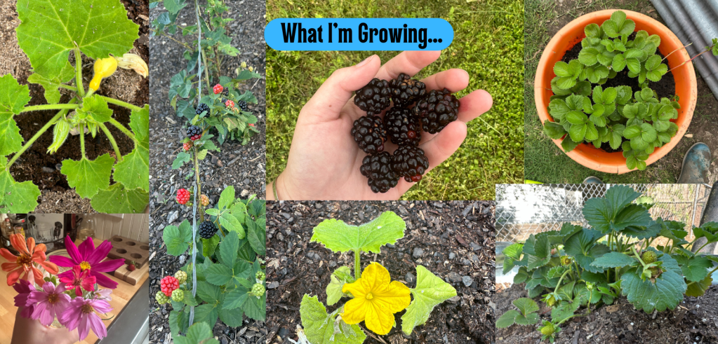 I’ve always been more successful at a fall garden, so we’ll see how these do! Luckily, we’ve had an abundance of rainfall this year and I’ve figured out a way to protect my fruits from most critters.